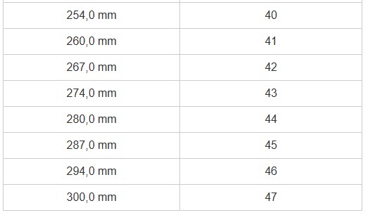 Paljasjalkakenkien miesten kokotaulukko EU-numeroilla